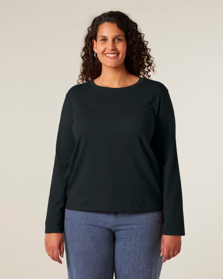 - Schmale Doppelnadel-Steppnähte an Ärmelbündchen und Saum