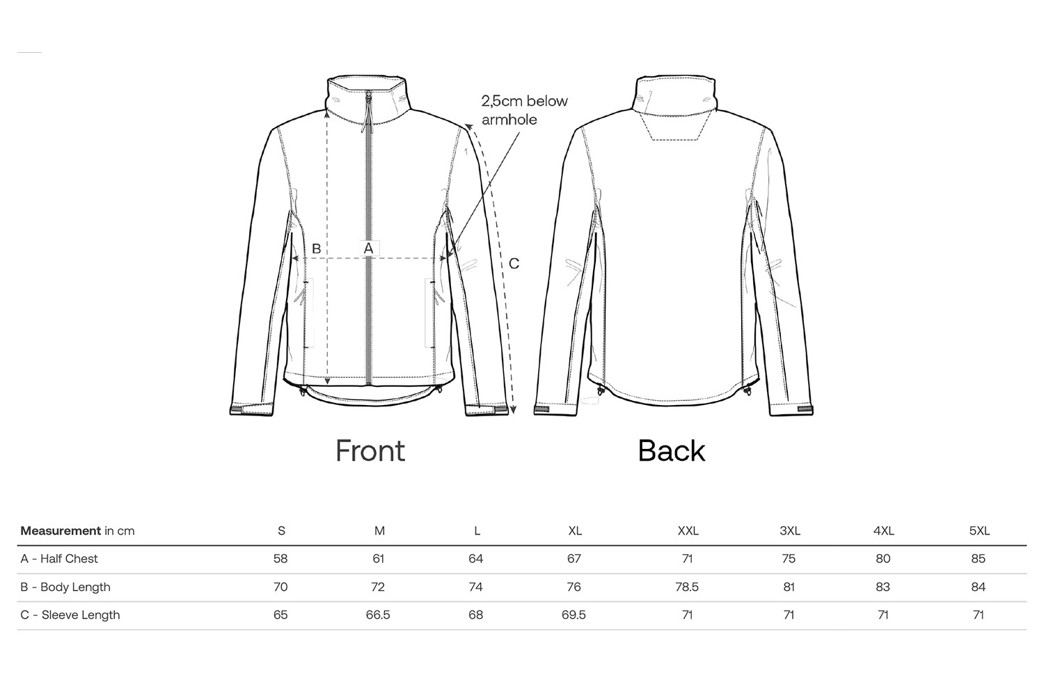 • Mit Klettverschluss regulierbare Ärmelöffnungen