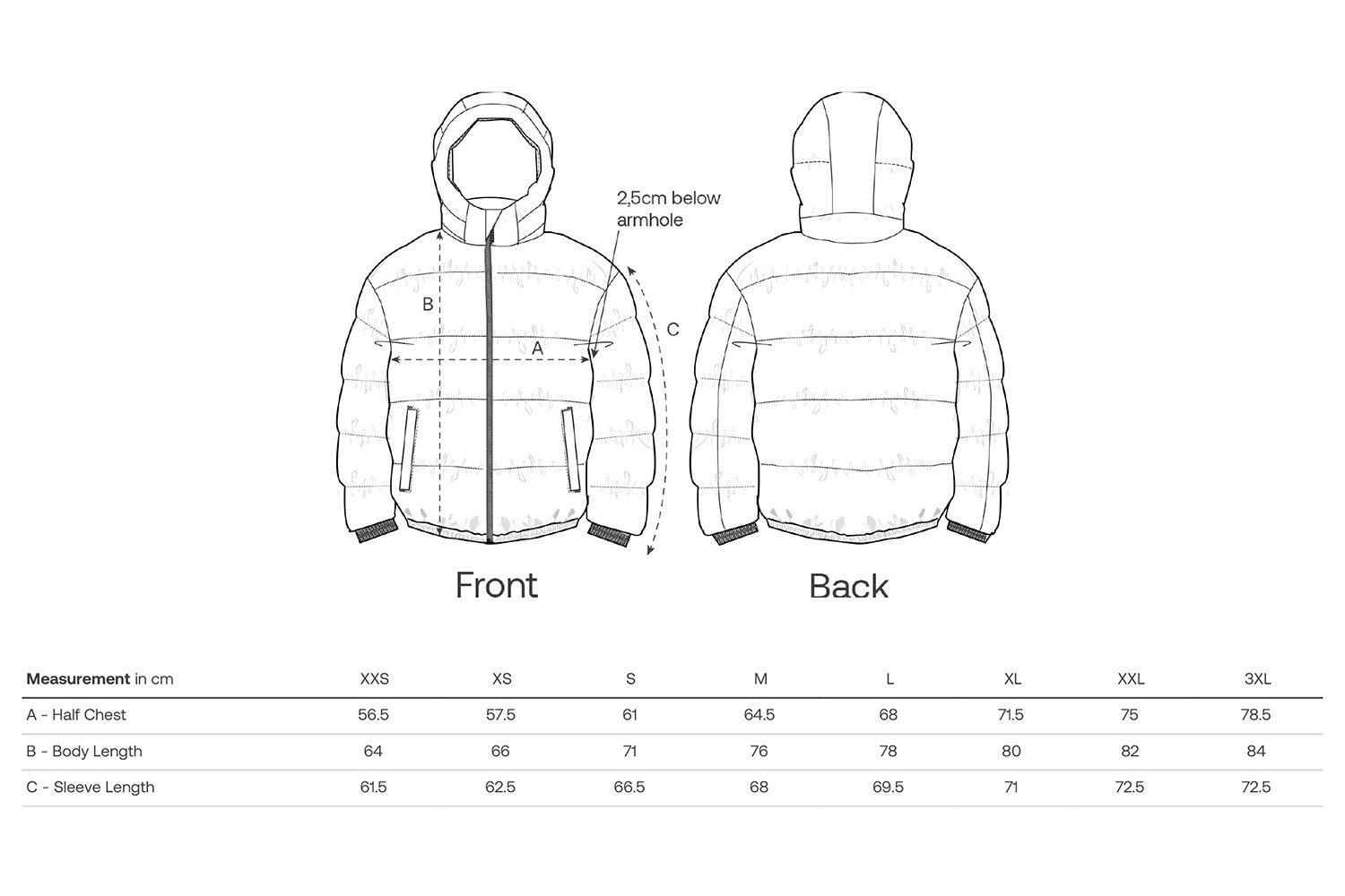 - Reißverschlussöffnung innen am Saum und an der linken Brust zur einfachen Veredelung
