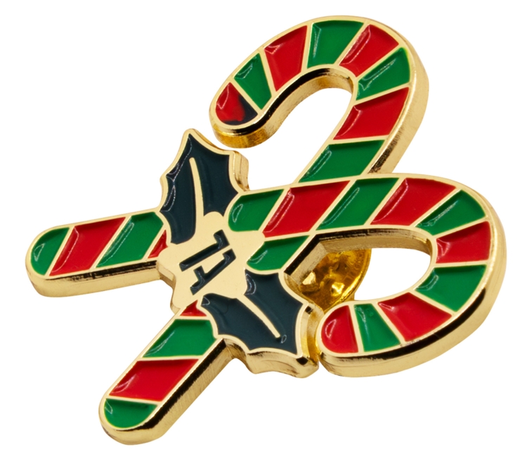 Die gekreuzten Candy Canes mit goldener Kontur verbreiten Weihnachtsglamour auf Mänteln, Schals oder Geschenkverpackungen.